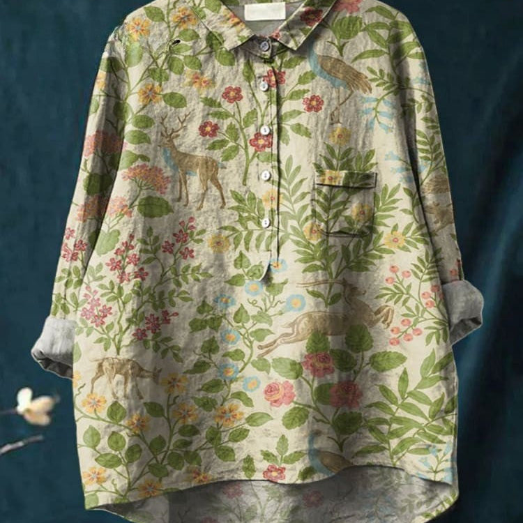 Oil Painting Spring Field Art Printed Women's Flowy Linen Dress