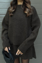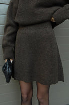 The Arabella set combines cozy elegance with modern chic, featuring a relaxed sweater paired with a matching skirt. Perfect for transitional seasons, this ensemble balances warmth and style for both casual days and evening outings.