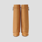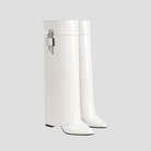 A sleek buckle strap detail enhances the refined edge, while the sculpted form creates a dramatic yet wearable look. Designed for confident expression, these boots balance contemporary innovation with timeless craftsmanship. Perfect for styling with dresses, skirts, or tailored layers, they elevate ensembles with undeniable presence.