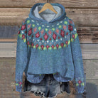 This knit doesn’t itch or irritate, thanks to a soft, breathable blend that feels gentle against your skin. It keeps you warm without overheating, ideal for the changing autumn weather. The material holds its shape, so no sagging or stretching after a few wears. The colorful, Scandinavian-inspired pattern adds a playful yet stylish touch to any outfit. Dress it down with jeans or shorts, or elevate it with a skirt and boots. The hoodie adds both extra warmth and a laid-back vibe.