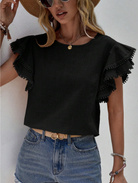 Timeless Design: A sophisticated high-neck blouse with pleated details that exude elegance and style.