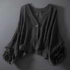 Made from soft, airy linen, this blouse flows with a loose fit and batwing sleeves. The light fabric and gentle drape offer comfort on warm days—finished with simple buttons and an easy charm.