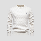 The textured cable knit lends quiet depth, while ribbed cuffs and hem provide gentle structure to the silhouette. Soft and breathable, this pullover balances comfort with subtle sophistication. A timeless jumper that remains an enduring essential in the modern wardrobe.