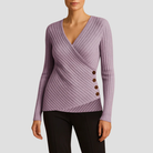 Discover the Laurevain wrap knit top, a ribbed pullover crafted with mid elasticity for natural comfort and ease. Designed with a flattering V-neck and cross-front silhouette, it offers quiet sophistication, making it a versatile piece for both casual and more refined settings.