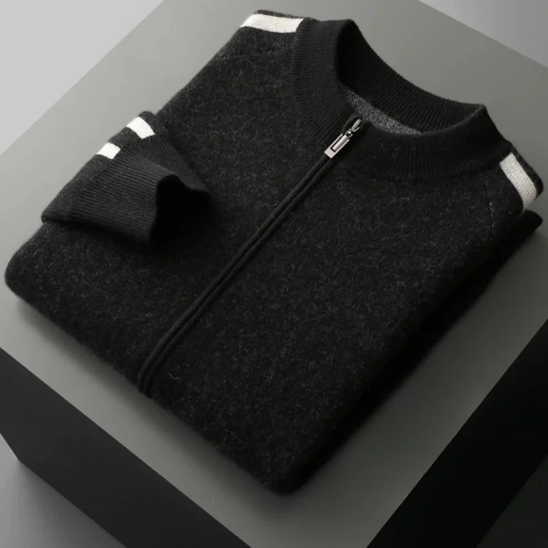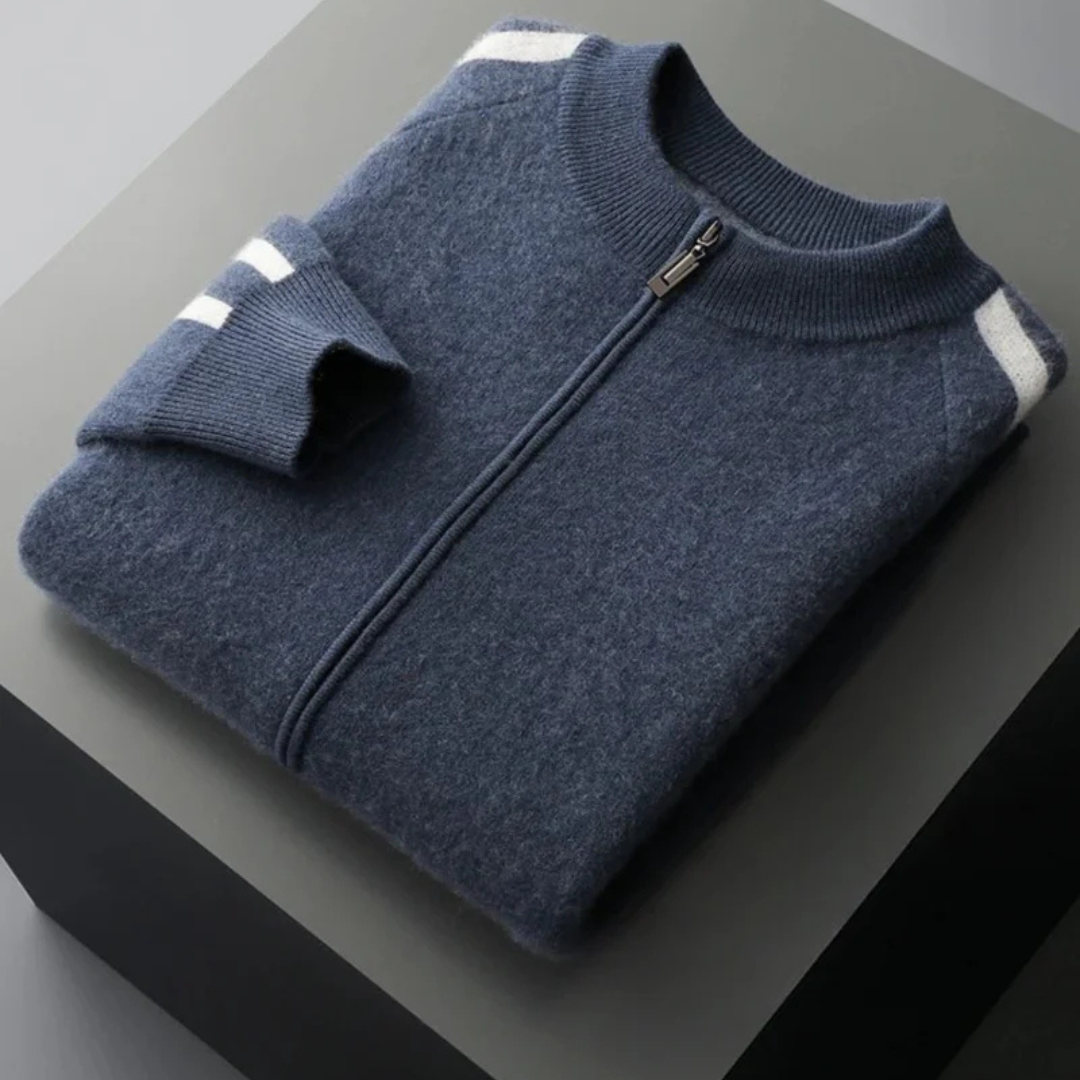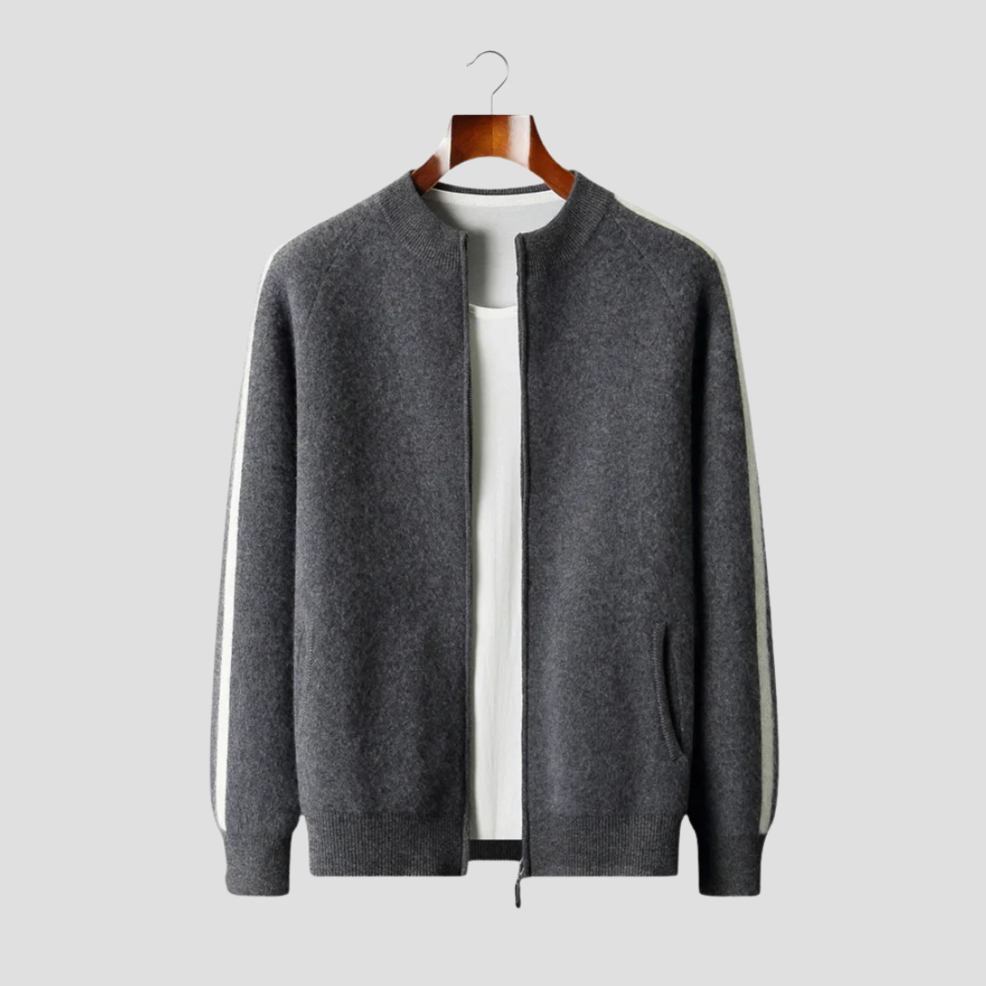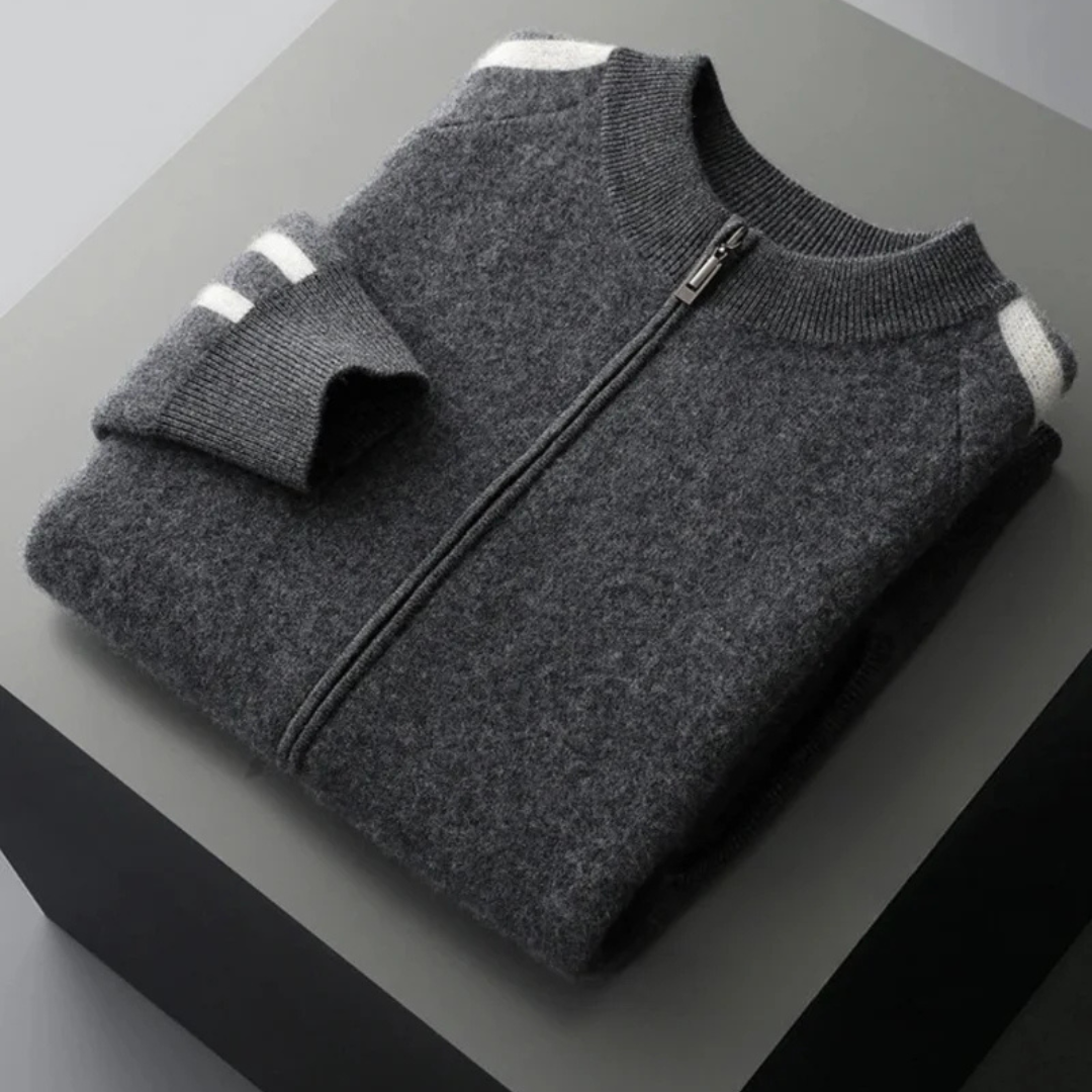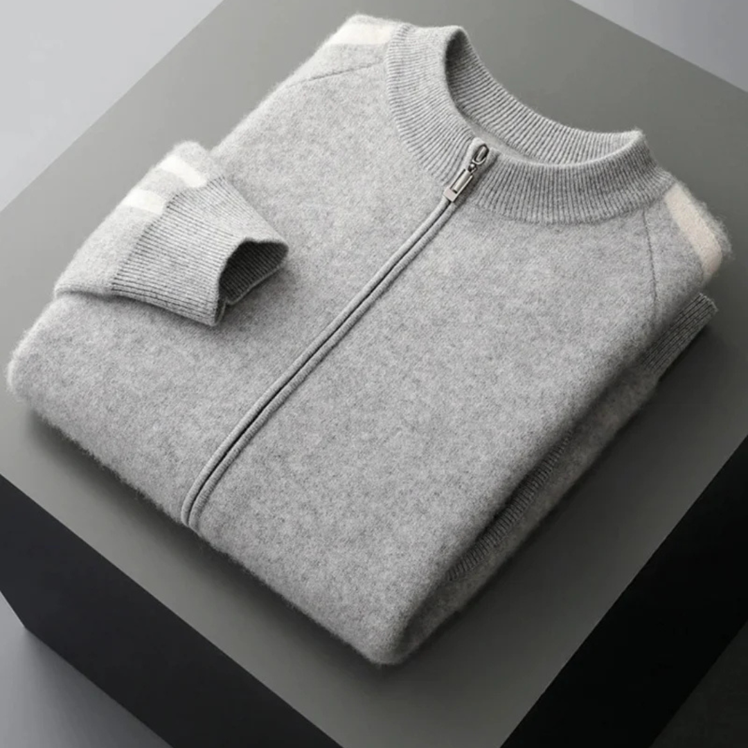A smooth zip fastening lends a clean, modern lines, while discreet pockets provide both function and quiet detail. The finely knitted texture ensures comfort without bulk, making this a timeless piece that sits with ease in any wardrobe.