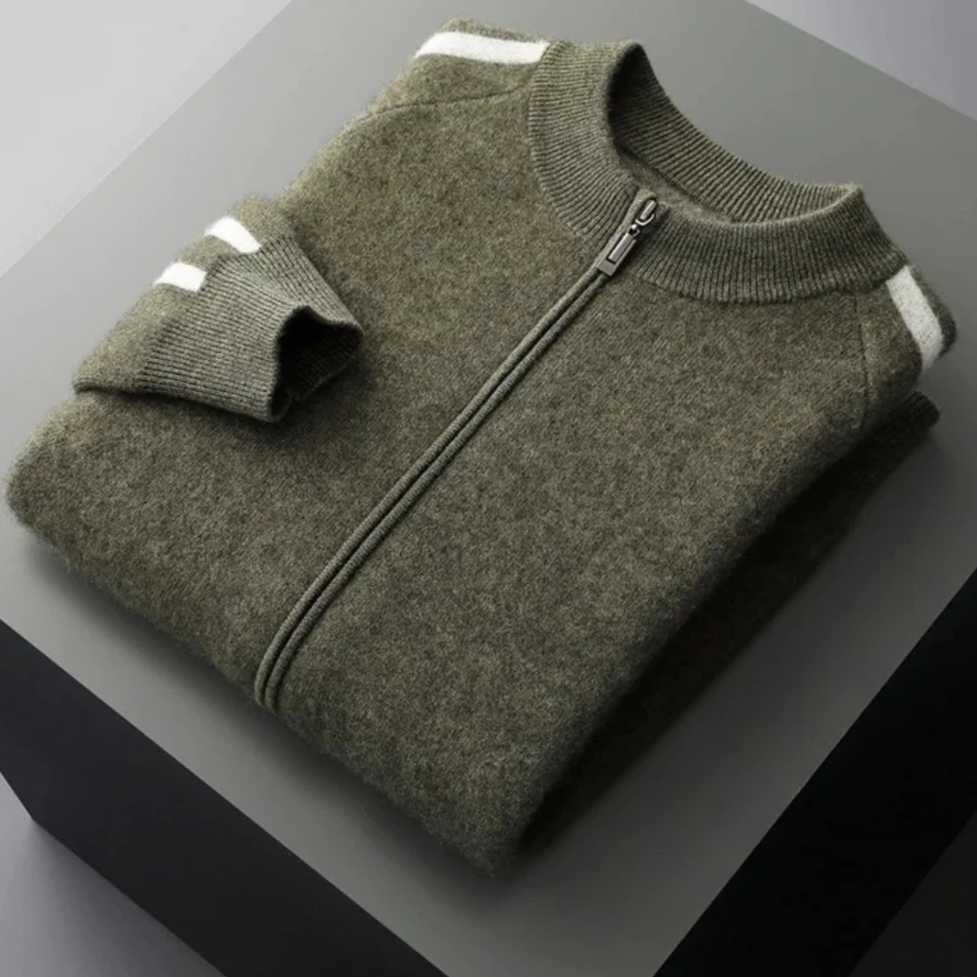 Discover the Laurevain merino wool cardigan, a zip-up sweater crafted from extra-fine fibres for softness and natural warmth. Designed with a crew neck, it offers a versatile layer that moves easily between casual and refined settings.