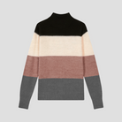 Discover the Laurevain colour block knit sweater, a striped pullover crafted with micro elasticity for gentle comfort. Designed with a mock neck and long sleeves, it offers a composed silhouette that balances casual ease with quiet sophistication, ideal for autumn and winter wear.