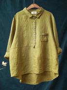 Women's Lapel Neck Casual Solid Colour Cotton And Linen Long Sleeve Shirt