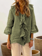 Women's Ruffles Casual 3/4 Sleeves Shirt