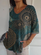 Women's Vintage Circle Totem Abstract Geometry Casual Pullover Knit