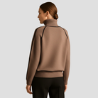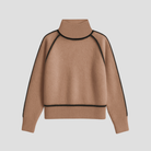 The contrast trim outlines the shoulders and neckline with subtle definition, while the ribbed hem and cuffs provide gentle structure. A timeless piece that blends minimalist style with quiet sophistication.
